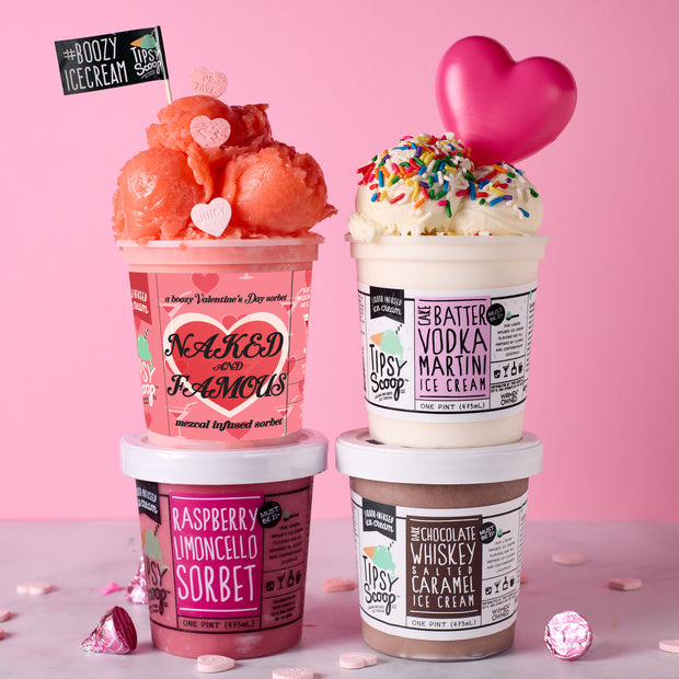 Why choose between dessert and a nightcap? Love on the Rocks is our Valentine’s Day boozy ice cream pack made for spooning, sipping, and sharing (or not—we don’t judge). Each scoop is churned with real spirits and crafted to taste like your favorite cocktails.